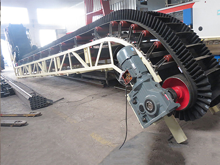 大倾角挡带式输送机其结构是在平形橡胶运输带两侧粘上可自由伸缩的橡胶波形立式“裙边”,在裙边之间又粘有强度和弹性的横隔板组成匣形斗,使物料在斗中进行连续输送。大倾角挡边带式输送机可广泛用于煤炭、粮食、建材、化工、水电和冶金等部门,在环境温度为-19℃~+40℃范围内,输送堆积比重为0.5-2.5t/m3的各种散状物料。对于输送有特殊要求的物料,如高温、具有酸、碱性、油类物质或有机溶剂等成分的物料,需采用特殊的挡边输送带。 目前我厂主要生产的大倾角带式输送机带宽分别为:B500、B650、B800、B1000、B12000、B14000、B16000。温度为-19℃~+40℃ 范围内。对于输送高温、酸碱、油类或有机溶剂等成分的物料,需采用特殊的挡边输送带材质,我公司可以根据您的需求来订做特殊输送专用的大倾角皮带输送机