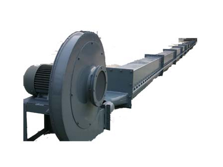 风送斜槽属于流态化床式输送设备,它由上下两个槽型壳体组成,在上下壳体间夹有耐磨、耐高温而透气性能非常好的透气层,整个壳体按斜度布置,物料由加料设备加入上壳体,以中、高压离心通风机为动力源,气体透气层使物料流态化,充气后的物料即沿斜度向前流动达到输送目的。